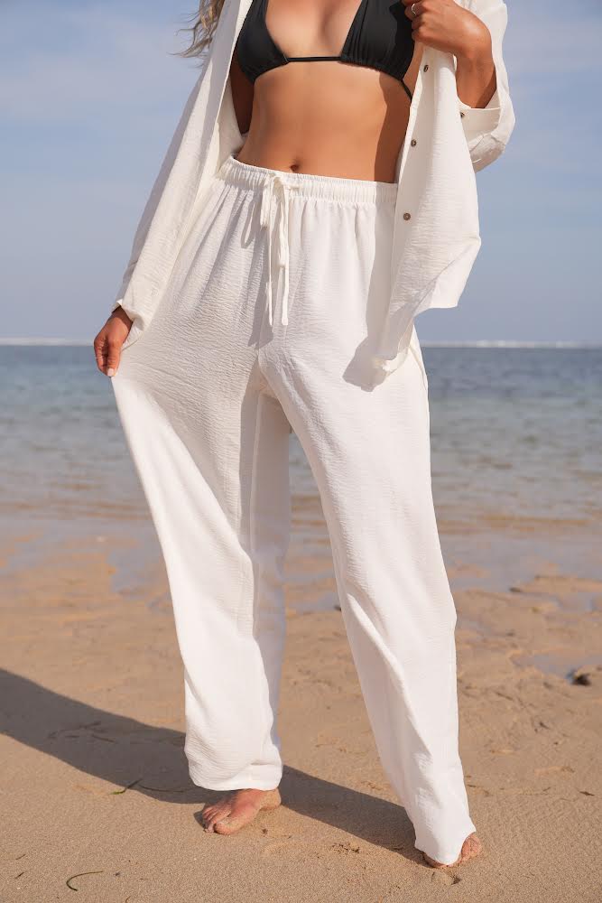 Made from polyester and designed with an elastic waist for ultimate comfort and a perfect fit. Complete the look with our essential button down shirt for an outfit that exudes effortless style, weather you’re heading to work or the beach.