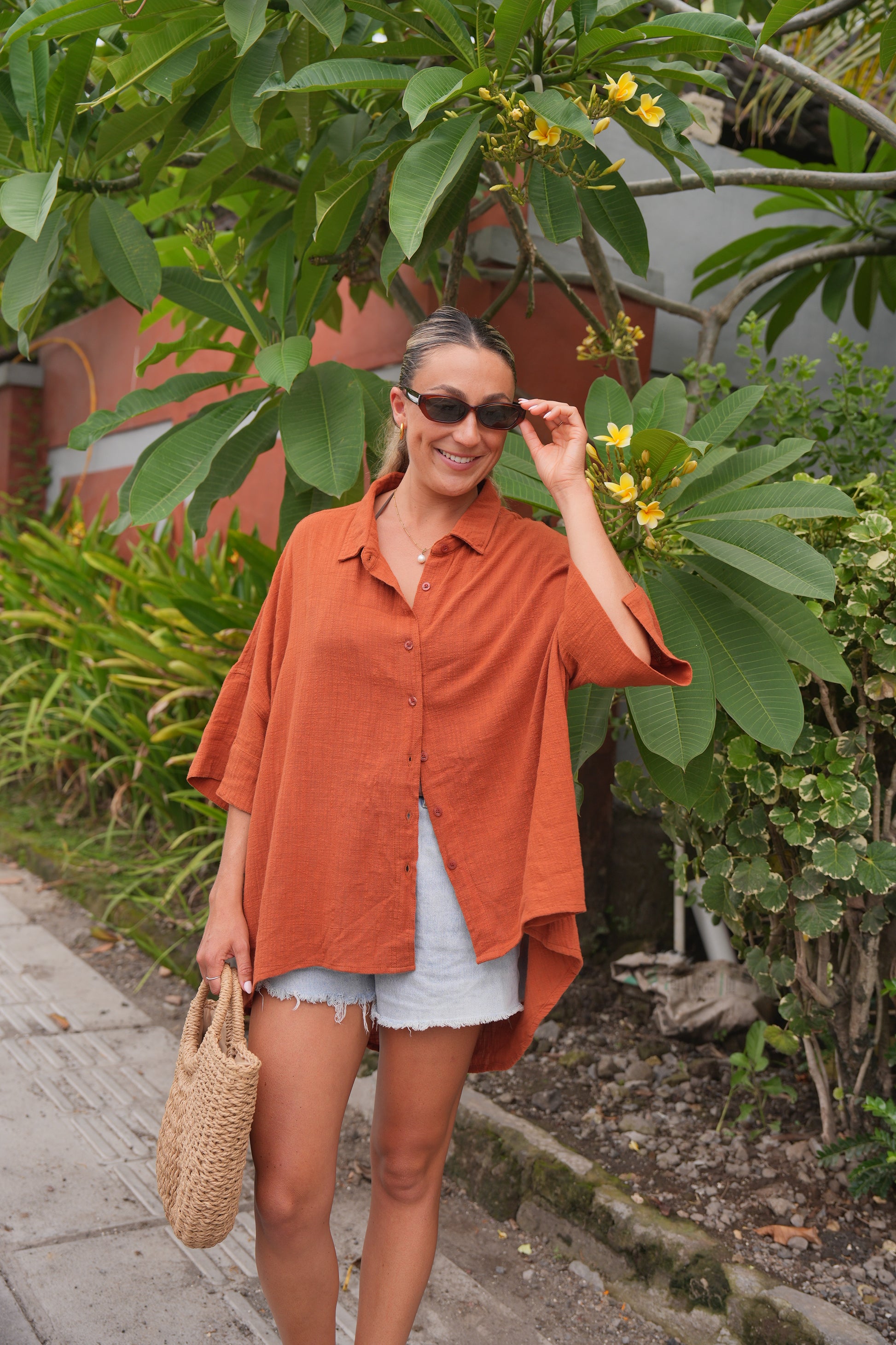 Beautifully oversized for effortless style and comfort and made from 100% cotton. This shirt is perfect for a day at the beach, coffee dates or just running errands. This is a must have in any wardrobe as it is such a versatile shirt. You will love it!